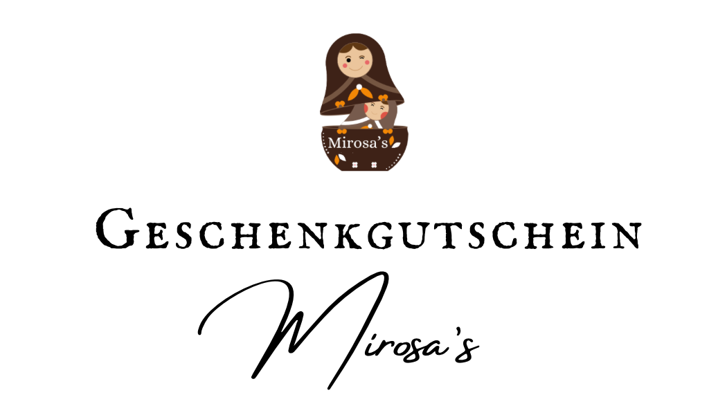 Verschenke Mirosa‘s mit unseren Geschenkgutscheinen. Wähle den Betrag für den Gutschein und bezahle online und wir schicken dir eine E-Mail mit einem Link.